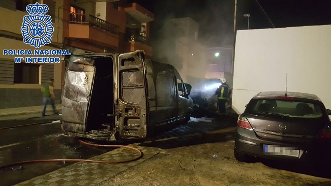 Los hechos se desencadenaron la madrugada del lunes al martes y el dispositivo policial se activó tras numerosas llamadas al teléfono 091 alertando de un incendio en un vehículo estacionado en la calle Reyes Católicos de la capital majorera.