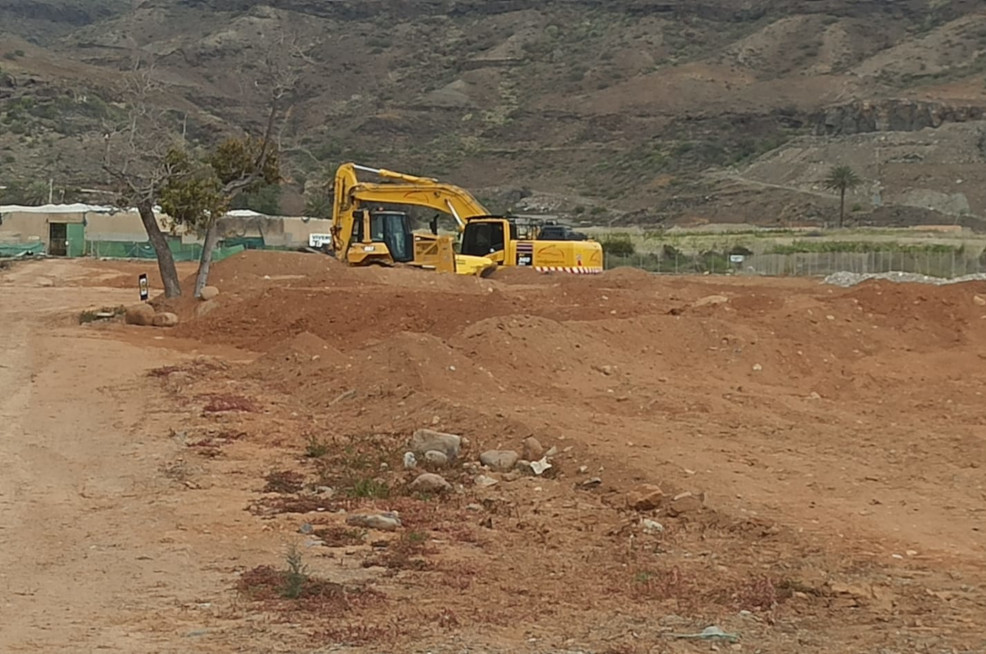 En los carteles de obra instalados no se hace referencia a las actuaciones que se llevarán a cabo en esta parcela, por lo que consideramos relevante mencionar que la zona de acopio de materiales e inertes prevista en el proyecto, se localiza más al oeste, en barranco de Vento y que discurre paralelo en su tramo final al barranco de Arguineguín, si bien, durante la evaluación ambiental se puso de manifiesto que tratándose de una zona considerada de restauración y limítrofe con la Zona de Especial Conservación Macizo de Tauro II, dicho uso requiere modificación de los planeamientos conforme dispone el Decreto 114/2021, de 25 de noviembre, por el que se acuerda la ejecución del proyecto, modificación que hasta la fecha no se ha realizado.