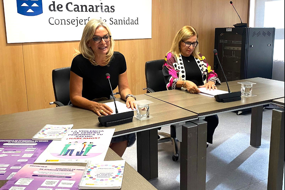 La consejera de Sanidad del Gobierno de Canarias, Esther Monzón, y la directora general de Programas Asistenciales del Servicio Canario de la Salud (SCS), Antonia María Pérez, coincidiendo con la conmemoración el próximo 25 de noviembre del Día Internacional para la Eliminación de la Violencia contra las Mujeres, presentaron esta mañana los detalles del Protocolo de detección y actuación sanitaria ante la violencia de género en Atención Primaria.