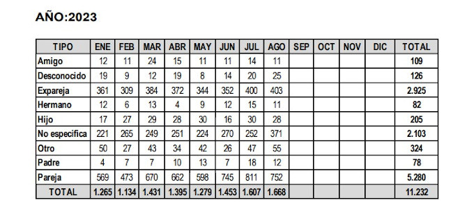 El análisis estadístico revela que el 70% de los agresores fueron la pareja o expareja, el resto hijos, padres, hermanos, amigos o desconocidos.