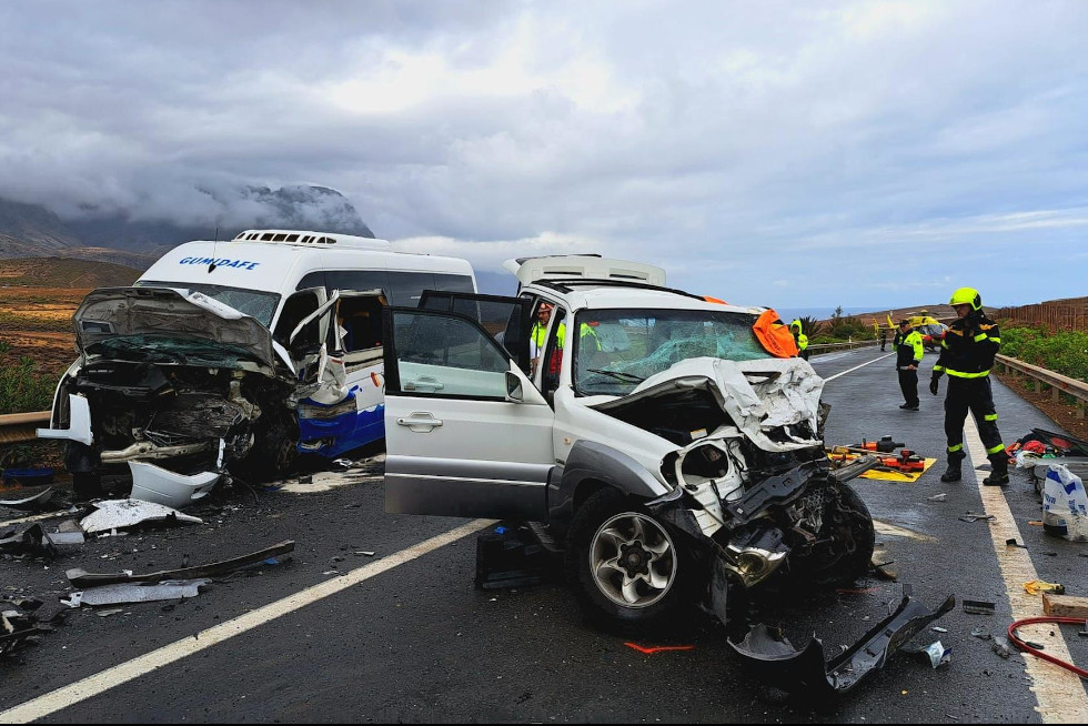 En concreto, a las 08:49 horas el Centro Coordinador de Emergencias y Seguridad (CECOES) 1-1-2 del Gobierno de Canarias recibía una alerta en la que se informaba que se había producido una colisión frontal entre un vehículo 4×4 y una guagua escolar en la citada vía con varias personas heridas.