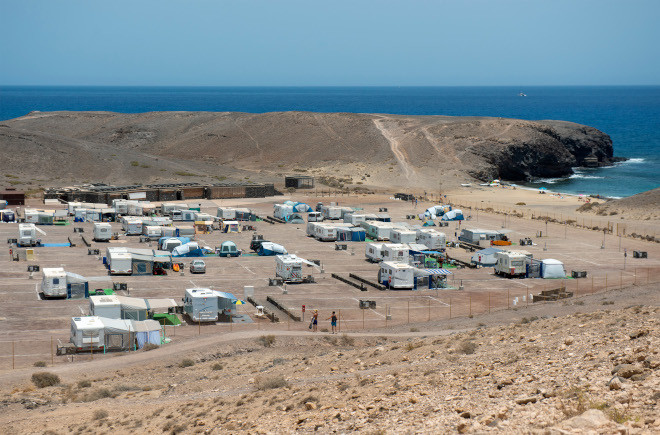 Mari Carmen recuerda que fue de las primeras en acampar aquí. Ya lo hacía junto a su marido y sus hijos en casetas. “Estrené la caseta con mis hijos chicos y ahora venimos todos aquí con una caravana”, relata. Ella y su marido fueron de los primeros en pernoctar como campistas en este enclave del sur de Lanzarote, una de las postales turísticas de la Isla.