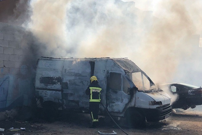 Los bomberos de La Oliva sofocaron este miércoles por la mañana el incendio de una furgoneta, que quedó calcinada, en la localidad de Corralejo.