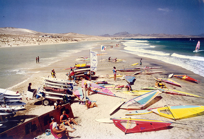 La prueba del Campeonato del Mundo de Windsurf y Kiteboarding de Fuerteventura es, sin duda, la fiesta del verano en la Isla. Así fueron los orígenes de la mítica prueba