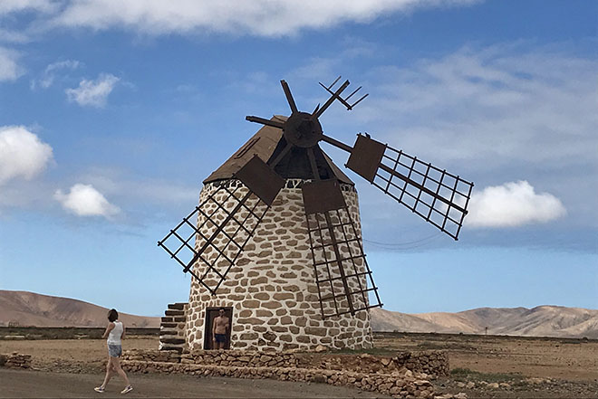 En cuanto al patrimonio histórico, el molino de Tefía sigue en pie pero dos de sus aspas han desaparecido, y “nadie lo repara”. Los molinos de viento son un elemento característico del paisaje majorero. Los primeros datan del siglo XVII, todos son BIC, y han sido fuente de energía de las regiones áridas y desérticas. Los majoreros los utilizaron para la extracción de agua y la molienda de granos tostados y la elaboración del gofio. Aunque existen aproximadamente mil distribuidos por toda la Isla, entre ellos destacan los de La Oliva, Tefía y Antigua que conforman la ‘Ruta de los Molinos’. Los vecinos lamentan que no se abran para enseñar y exhibir su espacio interior, y proponen un concurso para que se puedan explotar como museo o un comercio.