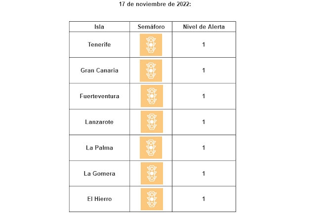 Según este informe, todas las islas continúan en el mismo nivel de alerta en el que estaban, manteniéndose en nivel 1 o de riesgo bajo.