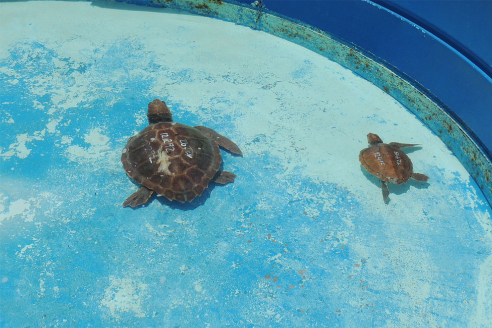 En los filtros de las piscinas de las instalaciones del centro en las que las tortugas se rehabilitan periódicamente se siguen encontrando restos de microplásticos, prueba de la ingesta constante de los mismos en su medio natural.