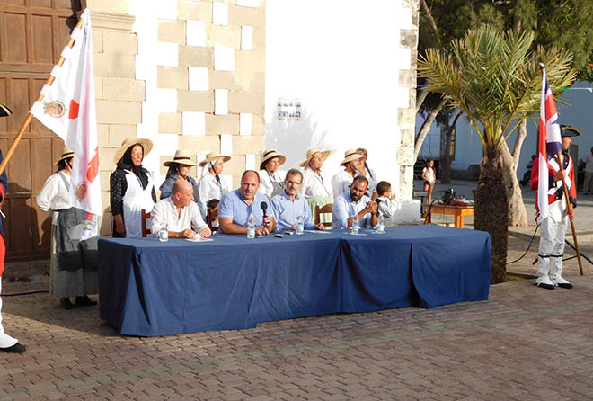 El acto contó con la presencia del alcalde de Tuineje, Sergio Lloret, el presidente del Cabildo de Fuerteventura, Marcial Morales, el concejal de Festejos, Christian Cabrera, y Juan José Cabrera, en representación de la Asociación Cultural Más Ruines que Caín.