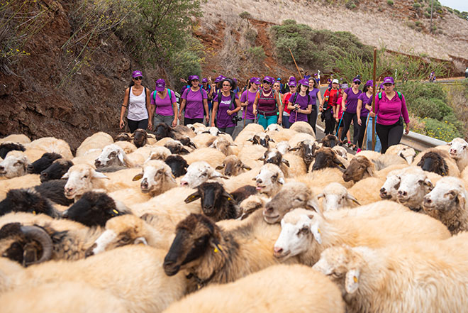 Un centenar de grancanarias del sector primario hicieron este sábado historia en Canarias al realizar la primera trashumancia exclusivamente femenina para demostrar que ellas históricamente han estado ahí, trabajando en el campo, aunque en la sombra y sin el protagonismo que se merecen por su duro trabajo, que comparten codo a codo con los hombres.