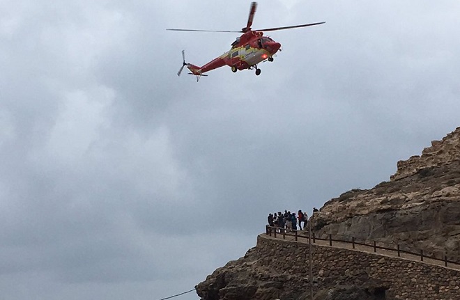Un helicóptero del Grupo de Emergencia y Salvamento (GES) del Gobierno de Canarias ha evacuado este domingo a 21 senderistas que no podían cruzar el barranco de Ajuy, en Pájara, por la crecida de su caudal.
