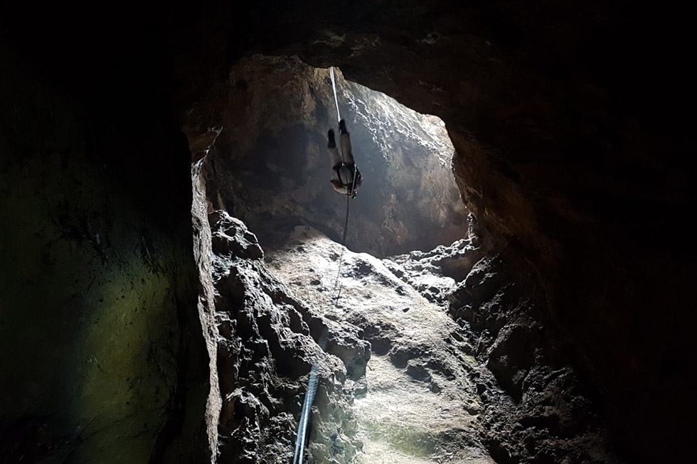 “Yo, un niño criado en Telde, apenas sabía nada de lo ocurrido en la Sima, aunque había escuchado cosas que contaban mi madre y mi abuela”, manifiesta. En el 2016, se plantó en este volcán y sus malpaíses y se dijo a sí mismo: “Yo tengo que hacer algo”. Con la ayuda del arqueólogo Javier Velasco en la investigación y los permisos oportunos de Patrimonio Histórico del Cabildo, así como el apoyo del grupo de aventura y escalada ‘Pernoctadores’, finalmente emprendió el descenso tras meses de duras prácticas.