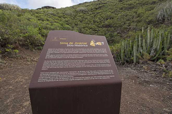 “De la noche a la mañana, se llevaron a treinta hombres”, les explicó Josefina Expósito en su casa de Agaete sobre lo ocurrido aquel fatídico día, a caballo entre el 4 y el 5 de abril de 1937. Su destino fue el fondo de la Sima. Así que el polvo que se alza del suelo cuando alguien se aproxima a sus bordes, es el mismo que levantaron ellos y las Brigadas del Amanecer, aunque esté envuelto ahora por la polvareda de olvido y la estridencia desmemoriada que encarnan machacadoras y volquetes.