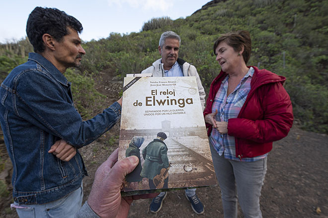 Al aproximarse al centro del cráter, a las inmediaciones del abismo, el relato empieza a desplegarse como las páginas de un libro, igual que el escrito por Sandra Franco Álvarez y Juan José Monzón Gil, ‘El reloj de Elwinga’, con ilustraciones de Elena Ferrándiz. La obra enhebra tres vidas familiares drásticamente alteradas por la II Guerra Mundial, pero “unidas por un hilo invisible”. Una de las puntadas que une los retales de este triángulo biográfico es precisamente la Sima de Jinámar.