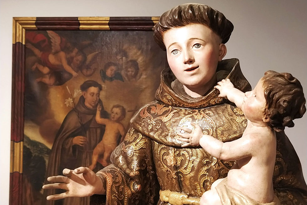 El san Antonio de Padua con el niño se expone estos días en la exposición “De Pourbus a Estévez. Arte e infancia en Canarias” en la Sala de Arte CajaCanarias de Santa Cruz de La Palma, organizada por la Fundación CajaCanarias, bajo el comisariado del historiador del arte Carlos Rodríguez Morales.