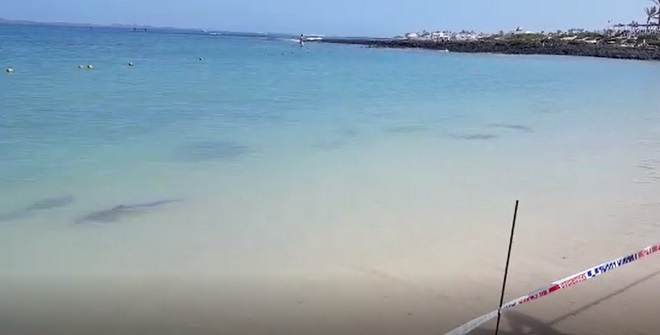 VÍDEO: Prohibido el baño en una playa de Corralejo ante la aparición de escualos