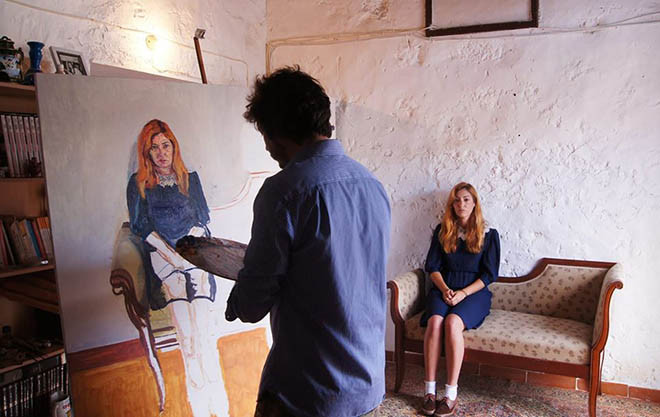 * En la fotografía, Daniel Jordán pintando en su taller durante el confinamiento del COVID-19. Lanzarote. Abril 2020.
